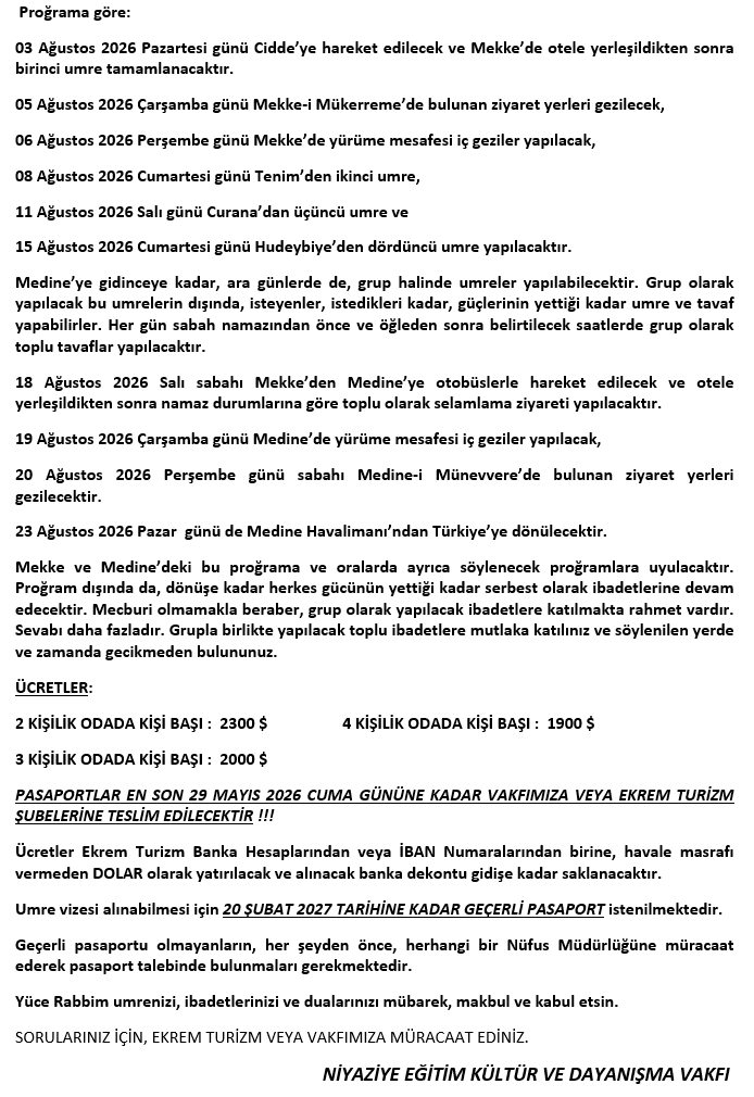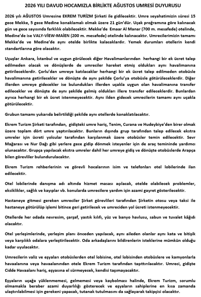 UMRE DUYURUSU