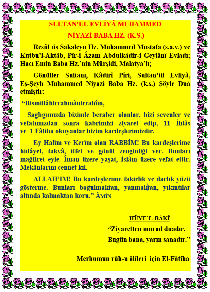 Allah (C.C.)’ın adı zikredilmeden başlanılan her önemli işin sonu bereketsiz olur. (Hadîs-i Şerîf)